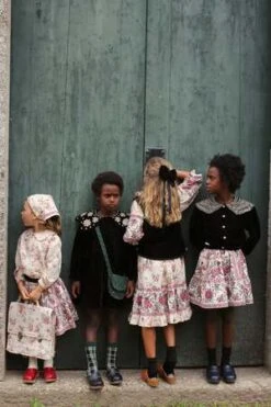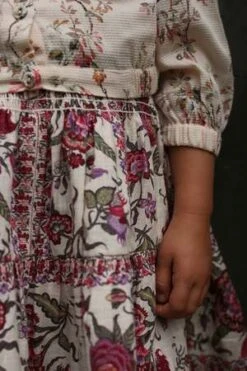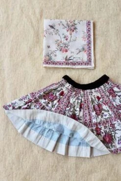 New from Bonjour for Autumn/Winter 2023. Kid’s tiered skirt in provencial floral print with thick velvet waistband. Sold in a set with scarf in birds floral print.