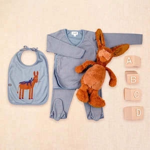 – 4-piece gift set including: wrap top, pants, bib and bunny toy