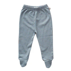 – Oeuf pima cotton jersey pants with enclosed feet, all over blue check print and elasticized waist