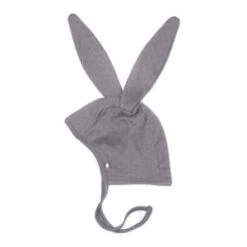 – Oeuf pima cotton baby bonnet with all over charcoal dots print, bunny ears and tie closure under the chin