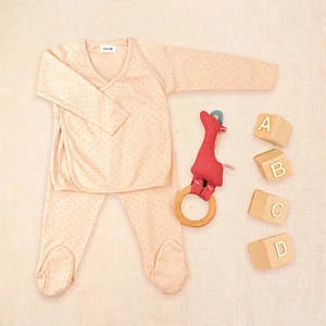 – Oeuf pima cotton jersey pants with enclosed feet, all over pink dot print and elasticized waist