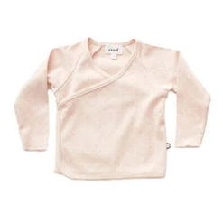 – Oeuf pima cotton jersey wrap top with snap closure at the side, all over pink dot print and long raglan sleeves