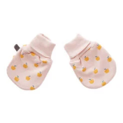– Oeuf pima cotton jersey mittens with all over pink apple print and ribbed cuffs