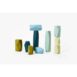 Balance these faceted stone-size shapes to create your own sculpture. Each set includes ten solid oak blocks. The blocks are coated in a water-based paint, and packaged in a drawstring bag. Dimensions: 6 x 2 1.5 in Material: Oak Wood