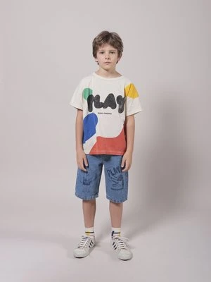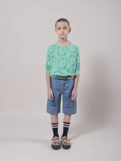 New from Bobo Choses ‘For President’ collection for Spring/Summer 2021. Baggy fit denim pant in a medium wash. In true Bobo Choses fashion, these jeans are decorated with whimsical details like oversized brand initials and Bobo Choses happy face imprinted on button.
