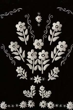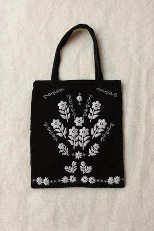 New from Bonjour for Autumn/Winter 2023. Large tote bag crafted from elegant black velvet with ornate ivory embroidery. Lined in a red and white cashmere print. Chic for kids and their grown-ups too.