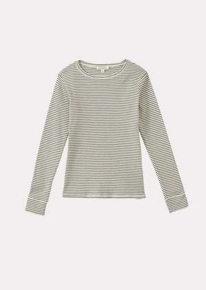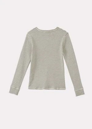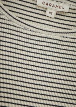 A fresh take on a CARAMEL classic: our Kishon Kids T-Shirt, this season in a Navy and Cream stripe. Designed with a round neckline and long raglan sleeves, this is ideal as an underlayer or equally as an elevated staple for everyday wear. The ribbed texture also allows the fabric to stretch, ensuring a comfortable fit. 100% Cotton. Made in Portugal.