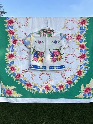 Made from vintage materials, dry cleaning recommended or wash cold. Do not dry.