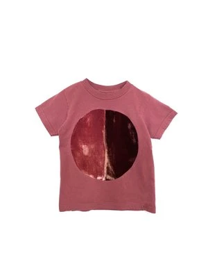 very soft unisex crew neck t-shirt with set in monochromatic velvet circle in front.