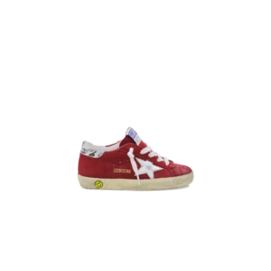 The Golden Goose superstar is available for kids in a fun red color with camo hits on the heal for a free spirited and loud aesthetic.