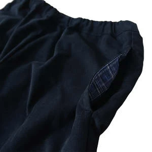 – Side seam pockets with blue plaid lining