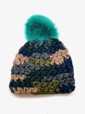 design | a mix, a medley, we like to call it a melange. same classic shape as our beanie pomster but with a mix of three complimentary wool colors creating a camouflage-like effect.