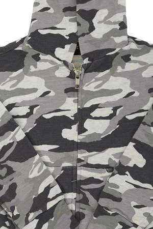 Monrow, known for their ultra soft lounge wear took it to a new level of cute and comfortable with this zip-up sweater. Classic camo print makes this piece a simple classic.