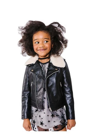 This genuine leather jacket makes an adorable statement piece for your little one. The edgy biker look is perfect for twinning with mom or dad!