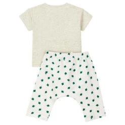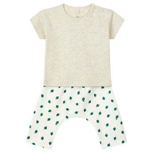 – Leggings with all over leaf print, elasticized waist and dropped crotch