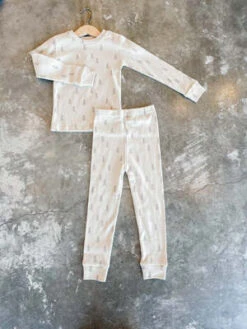 The Rylee+ Cru Organic Pajama Set Trees is an awesome combo of cozy, comfy and cute! Long sleeves and leggings give your kid plenty of room to grow, and the slim fit. The light brown pine trees will create a cuteness overload!