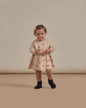Longsleeve raglan sweatshirt dress featuring an all-over print. Easy pullover style with ribbing at sleeve openings and neckline, and a gathered skirt.