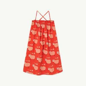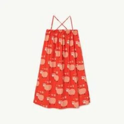 New from the Animals Observatory. Crossback strap sundress in a cherry tomato red with allover sheep print. We love this piece layered over a tee for spring, and worn on its own when the weather warms up.
