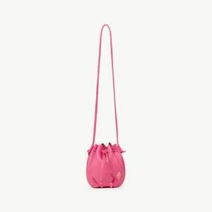 New from the Animals Observatory. Soft leather bucket pouch in hot pink that can be worn cross body or on the shoulder. A great sized purse.