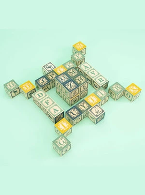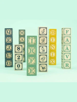 You’ll see a heritage-based color palette inspired by Portuguese tile patterns. The filigree features a subtle geometric enhancement, unique to the Portuguese ABC Block set.