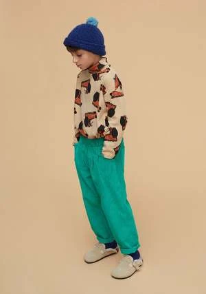 New from Weekend House Kids for Autumn/Winter 2022. Tan pull-on sweat pant with a kooky illustrated dog boot print.