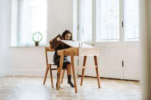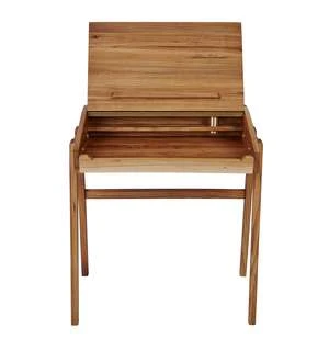 Our desks provide the space for creating new drawings, stories, perhaps song lyrics, poems, and books with stories we never dreamed of. The top of the desk features a special aperture which waits to welcome pencils and crayons. The liftable desktop may be a perfect hiding place to store all the works created on it. The inside of the desktop features a support for reading notes, albums, or drawings. The possibilities are endless.